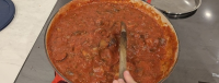 Add the tomatoes, balsamic vinegar, chili flakes, and salt. Let it simmer for about 20 mins.