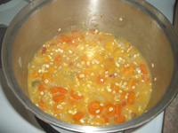 Step 3 After about 30-45 minutes, the squash will begin to disappear into the liquid. When this happens, add the barley flakes, diced peppers, and diced apple.