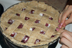 Step 2 Optionally put pie straps or a pie crust on top of the cherries. To create straps. Cut strips of rolled out pie dough. Place the vertical straps half way across the pie, then fold back half of them and place the horizontal straps, alternating the strips that you fold back. Repeat for the remaining vertical straps.