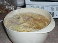 Step 3 Place the grated potatoes in a bowl with cold water. Let them soak for about 5 min. (This is a good time to do some dishes). Strain the grated potatoes well, use a towel if necessary.